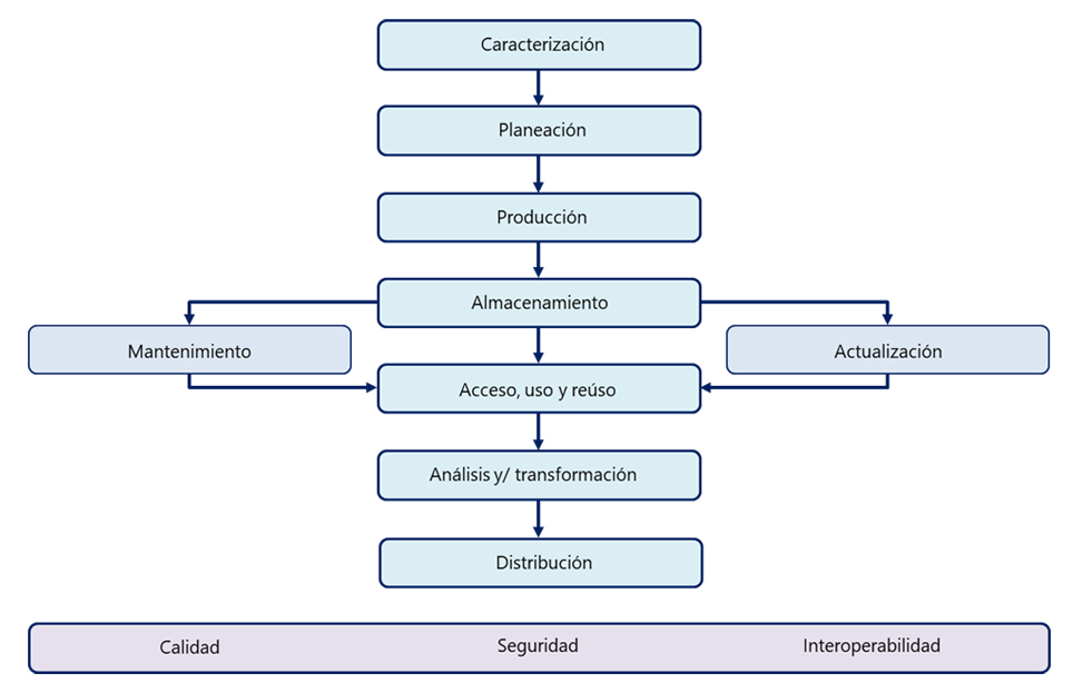 - La inclusión de la actualización continua y el mantenimiento como fases explícitas del ciclo asegura que los datos conserven su vigencia y utilidad en el tiempo. Estos procesos fortalecen la sostenibilidad de la información y respaldan decisiones confiables basadas en datos actuales.